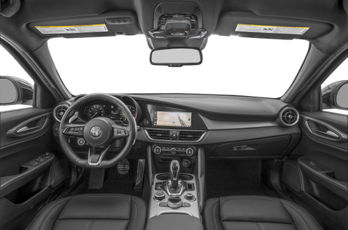 Inside, the 2025 Giulia comes with a 12.3-inch digital instrument cluster, which is configurable in three layouts: Evolved, Relax and Heritage. Leather seats are standard, as are Apple CarPlay, Android Auto and an eight-speaker audio system; a wireless charging pad is available. The interior also features a leather-wrapped gear shifter, aluminum paddle shifters and optional sport seats. Buyers can opt for the Premium Interior and Sound Package, which adds a 14-speaker Harman Kardon audio system and a leather dashboard and door panels.