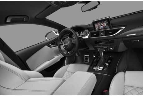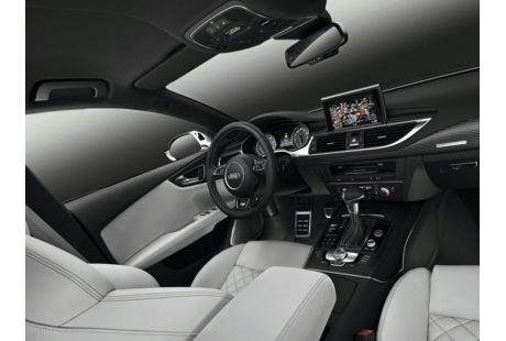 The inside of the 2013 S7 is business as usual when it comes to Audi, with elegant styling and upscale materials. The one-piece sport bucket seats are diamond-stitched, coated with leather, and heated; the standard tilt/telescoping multifunction steering wheel is trimmed in leather and controls the audio system. Audi’s MMI system with navigation plus and an eight-inch LCD display is standard, as are a 14-speaker Bose stereo system, automatic climate control, Bluetooth connectivity, and iPod compatibility. The options list offers ventilated seats, Bang & Olufsen sound system, massaging seats, and even a heads-up display for nighttime driving.