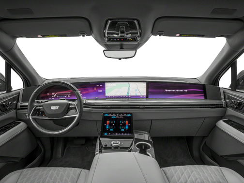 I wasn’t able to sit in the likely hand-built prototype at an advanced showing near the brand’s headquarters in suburban Detroit, but a few things stuck out about the new Escalade IQ’s interior. First, it’s not as spacious as the current Escalade’s, which makes sense given the smaller footprint and the high floor needed to accommodate the battery pack. The rear seats are particularly curious: The Executive Second-Row Seating Package that the demonstration model came equipped with had two captain’s chairs mounted higher than the front seats, and headroom looked scant. The head restraints of the captain’s chairs nearly touched the ceiling, which is a fixed-glass panoramic roof panel. There is a third row behind these seats, but it looks small, without much in the way of legroom.