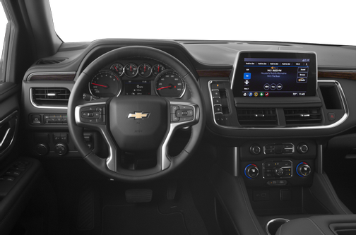 Powering the Tahoe is a standard 355-hp, 5.3-liter V-8 engine mated to a ten-speed automatic transmission that produces 383 pounds-feet of torque. A more powerful 420-hp, 6.2-liter V-8 engine is available. Rear-wheel drive comes standard, while four-wheel drive is available. Fuel economy for the base Tahoe has a best EPA-estimated rating of 16/20 mpg city/highway.