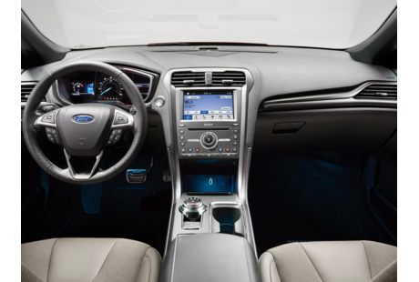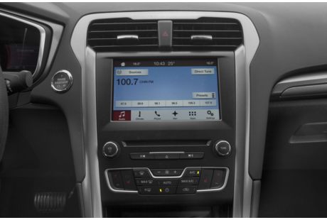 Inside, the Fusion features a revised center console. The typical shifter knob has been replaced with a new rotary gear dial. The Platinum trim comes with a premium leather interior with quilted seating. Standard features include a 60/40 split folding rear seat, remote keyless entry, push-button start, and a tilt/telescoping steering wheel. The available SYNC 3 multimedia system includes an 8-inch touchscreen, an integrated navigation system, Apple CarPlay/Android Auto compatibility, and Siri Eyes Free mode. Other available features include remote start, dual-zone automatic climate control, rear HVAC, heated/ventilated front seats, a heated steering wheel, adaptive cruise control, an automatic dimming rearview mirror, and a Sony premium audio system.