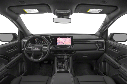 The Canyon’s 2.7-liter is paired with an eight-speed automatic transmission. Rear-wheel drive is standard on the entry-level Elevation trim; four-wheel drive is a $3,300 option on the Elevation and standard on the AT4 and Denali. Fuel economy numbers for 2025 are not yet available, but the 2024 rear-drive Elevation returns an EPA-rated 19/23/20 mpg city/highway/combined, while the 4WD trucks are rated at 18/22/19 mpg; fuel economy for the off-road-oriented AT4X drops to 17/17/17 mpg. The 2024 Ford and Toyota both outperform the Canyon by an mpg or two, while the (pricey) Tacoma hybrid bests the GMC in both output and efficiency, returning a best of 23/24/24 mpg.