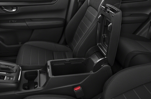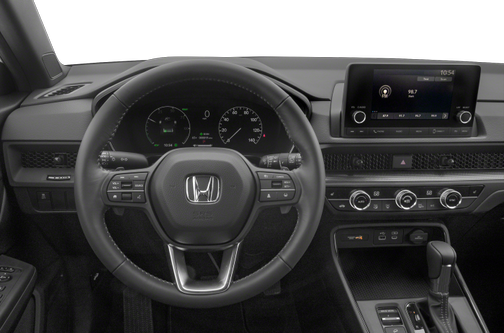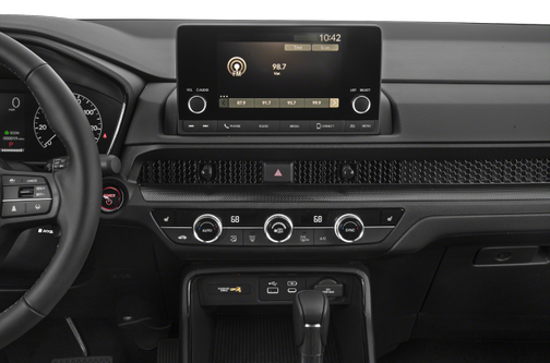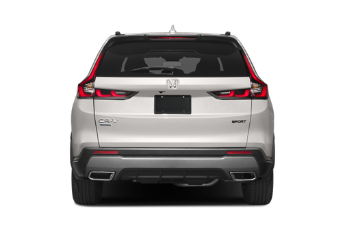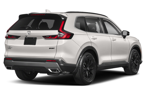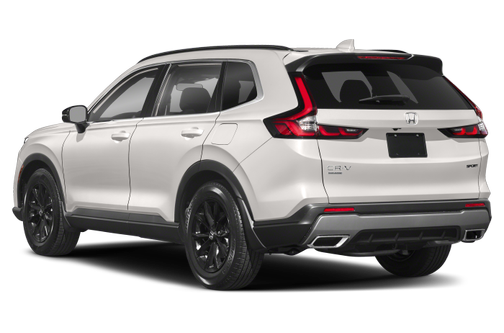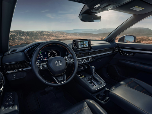 CR-V Hybrids get their Sport look from dual exhaust finishers, as well as black trim on the grille and black roof rails, mirror housings and 18-inch wheels. A firmer suspension tune pays off with improved ride and handling. Inside, orange stitching on the seats and leather-wrapped steering wheel adds flair, and even the basic Sport gets the moonroof, dual-zone climate control and heated front seats (power for the driver). The Sport trim also includes the six-speaker 240-watt audio system, and rear-seat USB ports allow all passengers access to the battery’s precious juice.