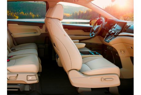 The 2019 Honda Odyssey is a popular family minivan that seats up to seven passengers across three rows. It is powered by a 280-hp, 3.5-liter V-6 engine mated to a standard nine-speed automatic transmission or an optional ten-speed automatic. Inside, the cabin features the “Magic Slide” second-row seats that allow you to conveniently arrange the layout of the second row.