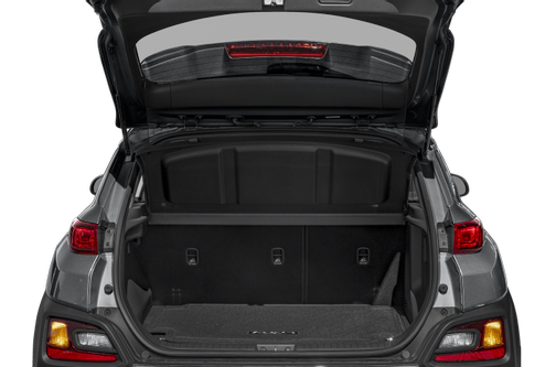 The 2021 Hyundai Kona is a subcompact SUV that seats five passengers. Maximum cargo capacity is 45.8 cubic feet with the rear seat folded down.