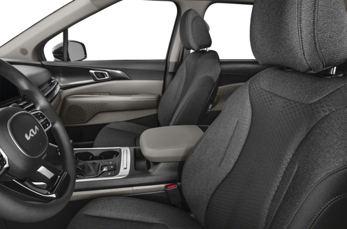 V-6-powered Carnivals continue to use a traditional gearshift lever, but hybrid models get a rotary-dial gear selector; we’ve found this dial easy to operate in other Kia hybrid vehicles that have it. The center console is slightly revised; the dual cupholders are upsized to accommodate larger bottles, which means that there is no longer a smartphone storage slot between them. However, the bin forward of the shifter has been enlarged to house bigger phone storage trays, including a wireless charger if so equipped. Two more cupholders for second-row passengers (with a smartphone storage slot) are built into the rear of the front center console. In all, the Carnival’s small-items storage space remains excellent.